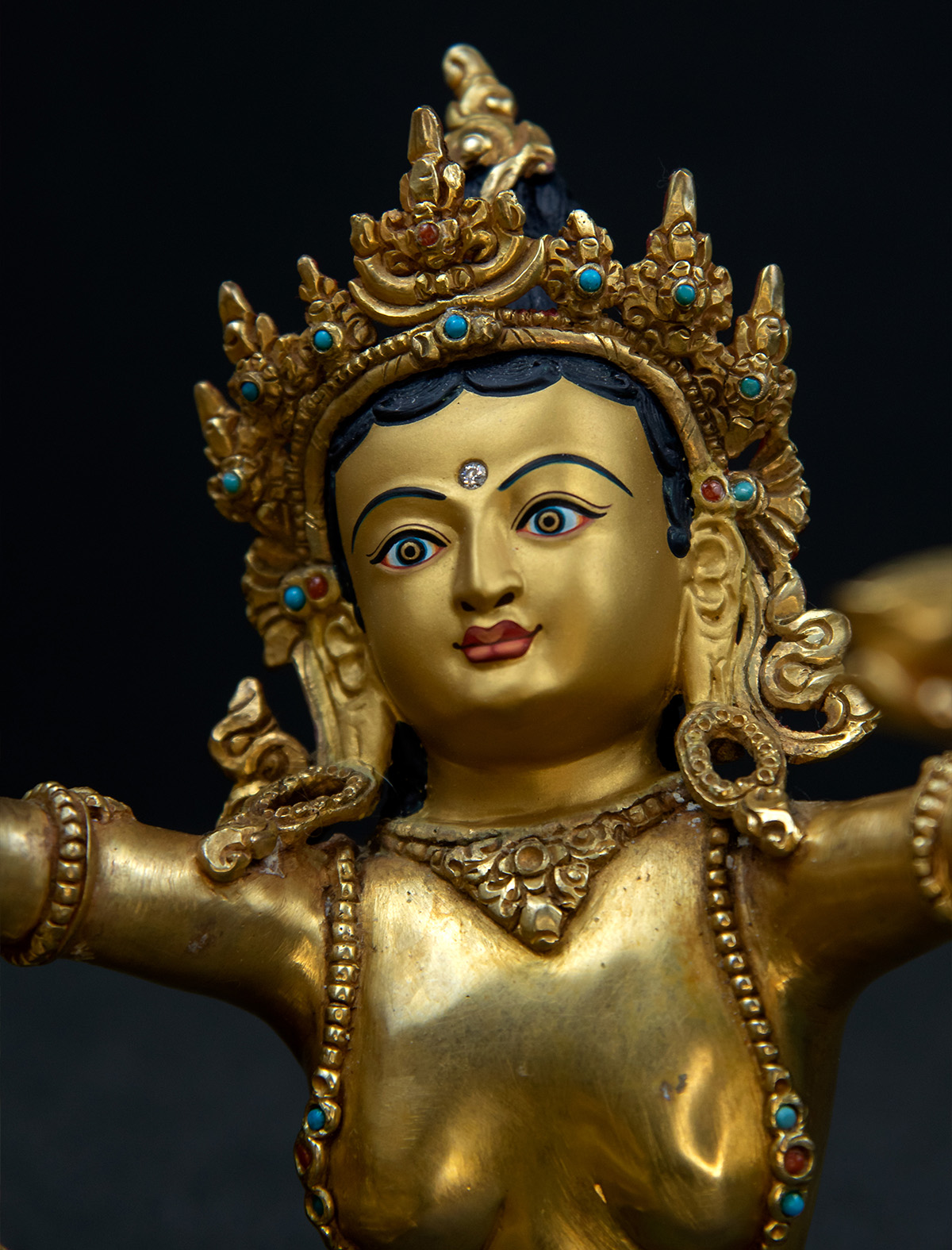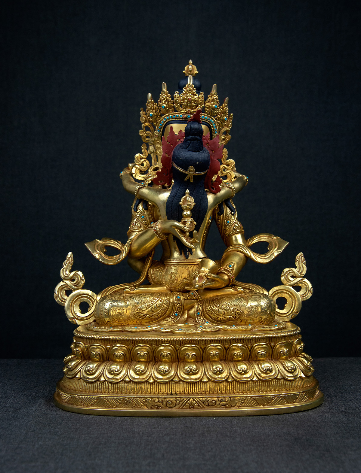 Thickly gilded with 24k gold for durability and brilliance, the statue is further enhanced by an antique finish that lends it a timeless allure. The face of the statue, painted with 24k gold, reflects the artist’s dedication, with every line rendered smooth and precise, capturing Vajrasattva’s calm and composed essence. This masterpiece invites practitioners and admirers to connect with its profound energy, serving as a tool for reflection and a testament to the mind's potential for clarity and renewal.