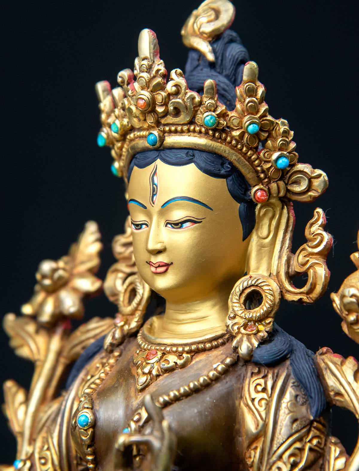 For Dharma practitioners, this statue is a reminder to nurture both inner and outer well-being, to cultivate wisdom that sustains life, and to practice with the steadfast gentleness that White Tara represents. Made in Patan, Nepal, it follows the refined proportions and iconography of the Newar Buddhist tradition.